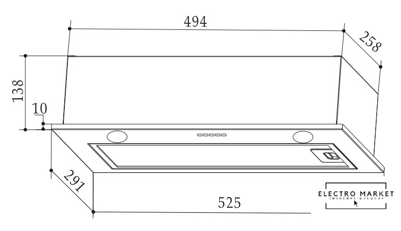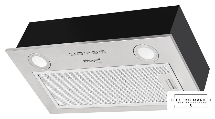конструкция телескопическая, монтаж для встраивания, ширина 59.7 см, управление механическое/кнопочное, производительность вытяжки 450 м³/ч, производительность мотора 500 м³/ч, цвет нержавеющая сталь
