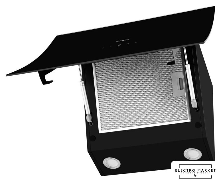 конструкция телескопическая, монтаж для встраивания, ширина 59.5 см, управление механическое/кнопочное, производительность мотора 550 м³/ч, цвет нержавеющая сталь