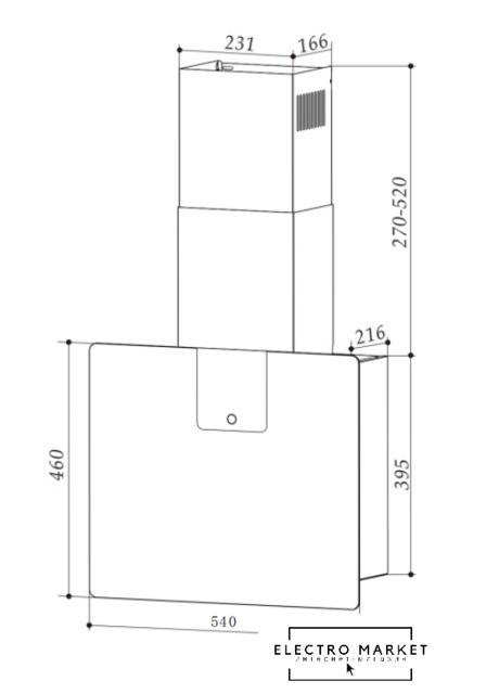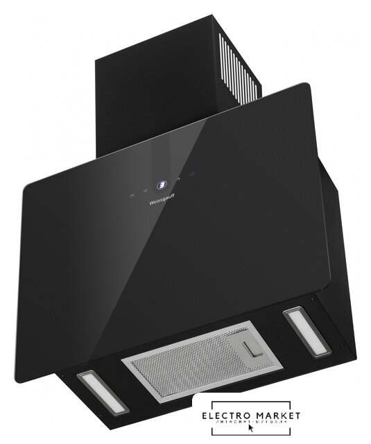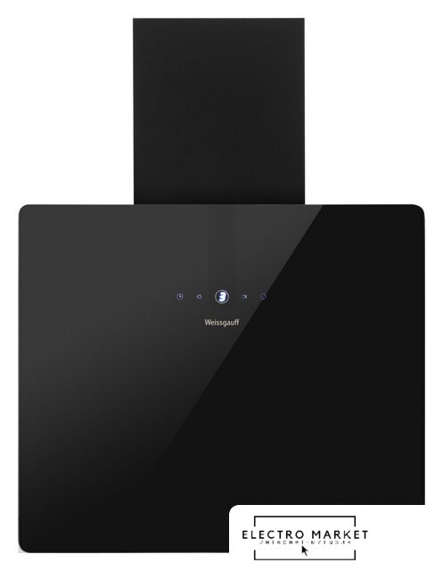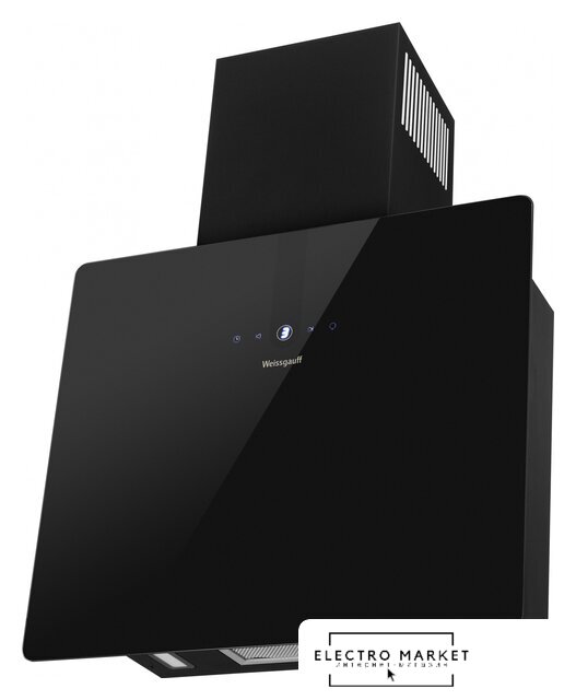 конструкция наклонная, монтаж настенный, ширина 60 см, управление сенсорное, производительность мотора 600 м³/ч, цвет черный