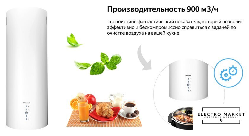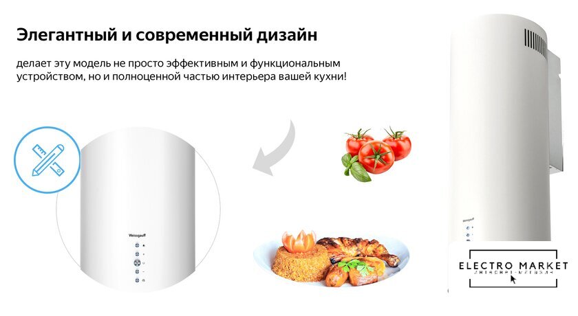 конструкция наклонная, монтаж настенный, управление сенсорное, производительность мотора 1200 м³/ч, ширина 89.8 см