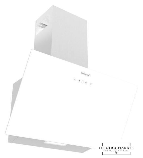 конструкция Т-образная, монтаж настенный, ширина 59 см, управление механическое/кнопочное, производительность мотора 430 м³/ч, цвет белый