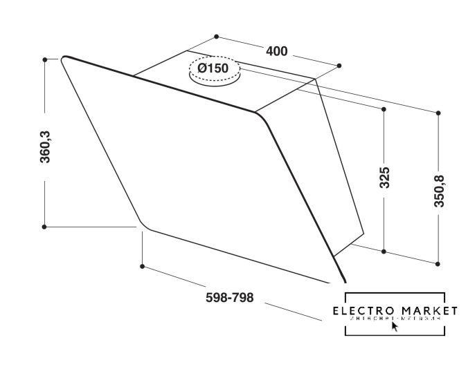 конструкция Т-образная, монтаж настенный, управление механическое/кнопочное, производительность мотора 800 м³/ч, ширина 90 см