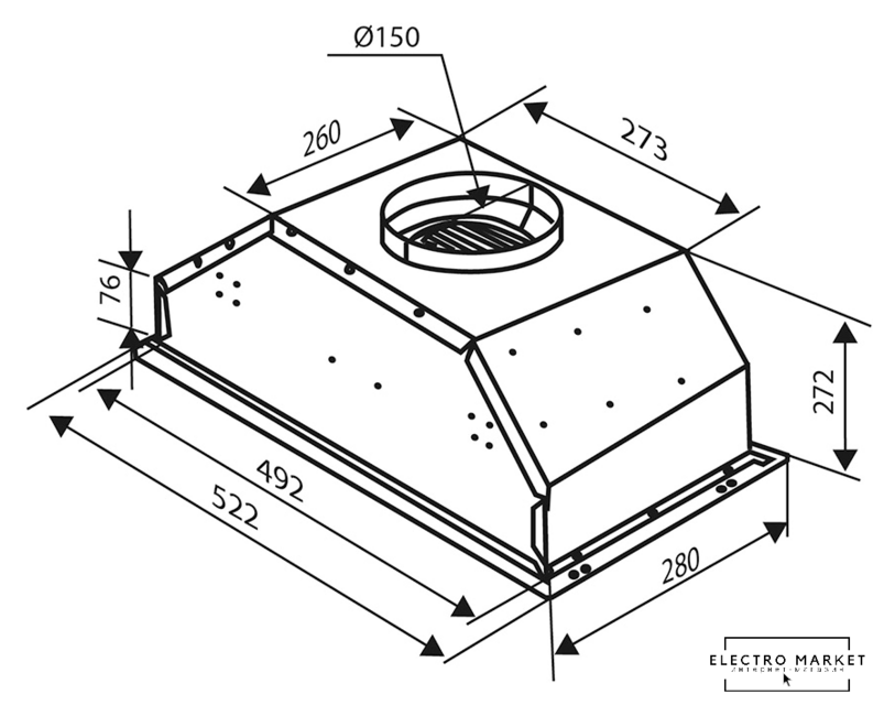 конструкция наклонная, монтаж настенный, ширина 60 см, управление электронное, производительность мотора 550 м³/ч, цвет черный