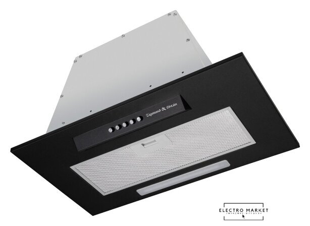 конструкция скрытая, монтаж для встраивания, ширина 52 см, управление электронное/кнопочное, производительность мотора 1050 м³/ч, цвет черный