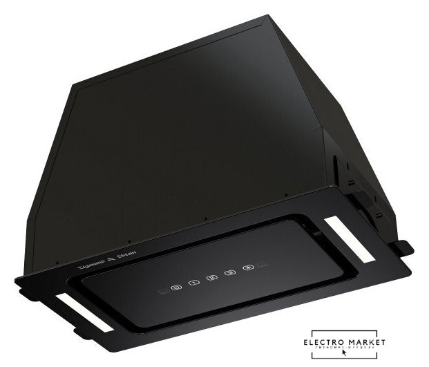 конструкция скрытая, монтаж для встраивания, ширина 52 см, управление сенсорное, производительность мотора 800 м³/ч, цвет черный