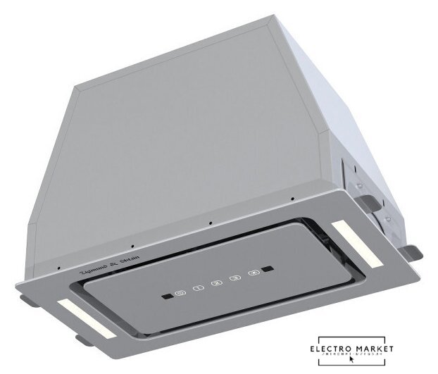 конструкция скрытая, монтаж для встраивания, ширина 59.8 см, управление сенсорное/дистанционное, производительность мотора 1200 м³/ч, цвет черный