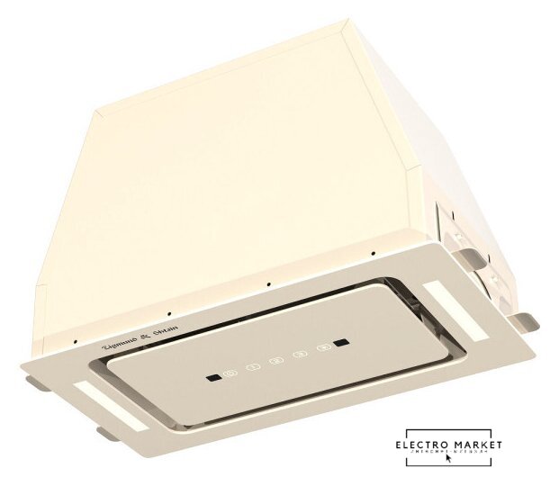 конструкция скрытая, монтаж для встраивания, ширина 52 см, управление электронное/кнопочное, производительность мотора 800 м³/ч, цвет кремовый