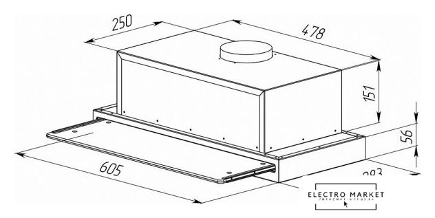 конструкция телескопическая, монтаж для встраивания, управление механическое/слайдерное, производительность мотора 600 м³/ч, ширина 60 см