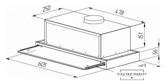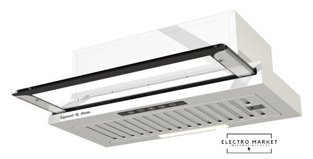 конструкция телескопическая, монтаж для встраивания, управление механическое/слайдерное, производительность мотора 600 м³/ч, ширина 60 см