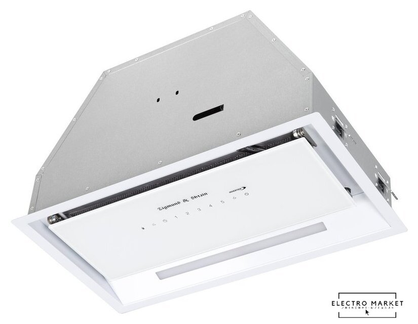 конструкция телескопическая, монтаж для встраивания, ширина 59.7 см, управление сенсорное, производительность мотора 1100 м³/ч, цвет белый