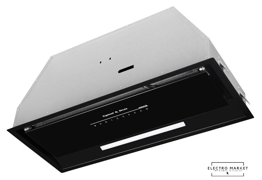 конструкция скрытая, монтаж для встраивания, ширина 52 см, управление сенсорное, производительность мотора 650 м³/ч, цвет черный
