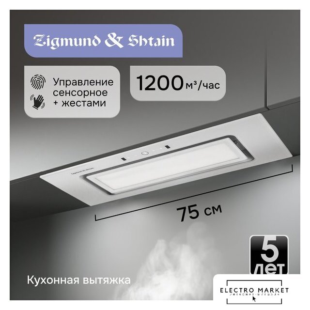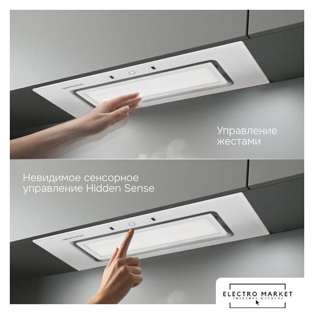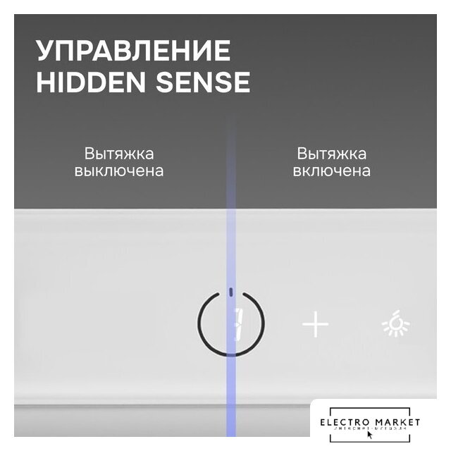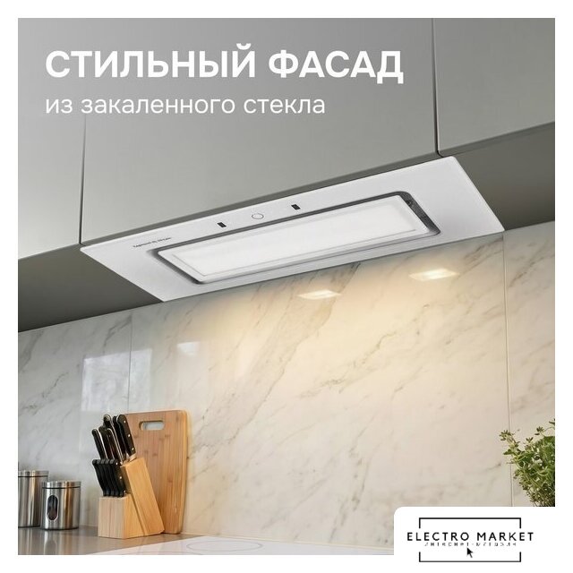 конструкция скрытая, монтаж для встраивания, ширина 52.5 см, управление сенсорное, производительность мотора 1500 м³/ч, цвет черный