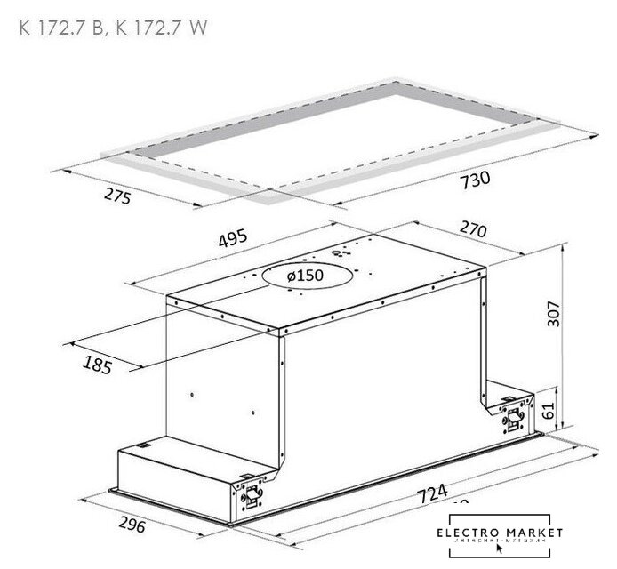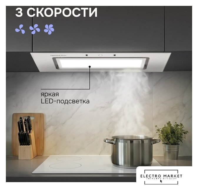 | Комплектация | вытяжка, алюминиевый фильтр, монтажный комплект, инструкция |