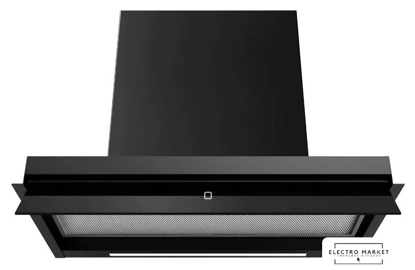 конструкция наклонная, монтаж настенный, ширина 90 см, управление сенсорное, производительность мотора 1000 м³/ч, цвет черный