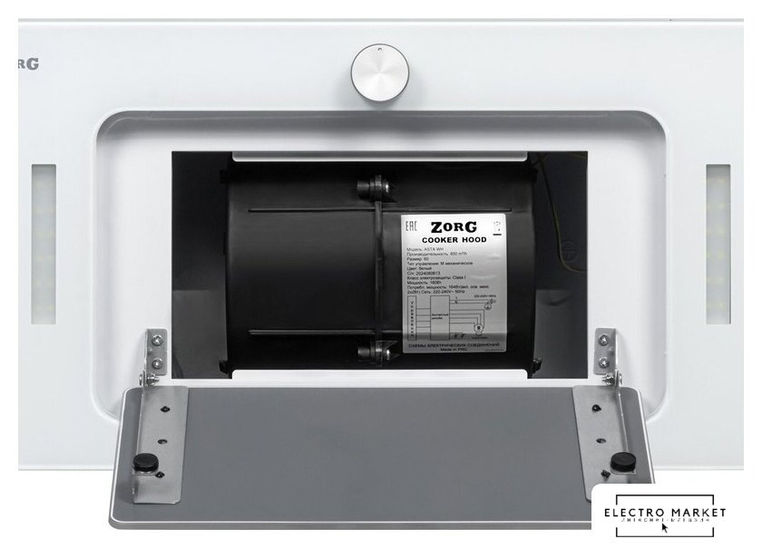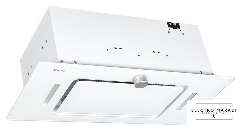 конструкция скрытая, монтаж для встраивания, ширина 52 см, управление сенсорное, производительность мотора 750 м³/ч, цвет белый