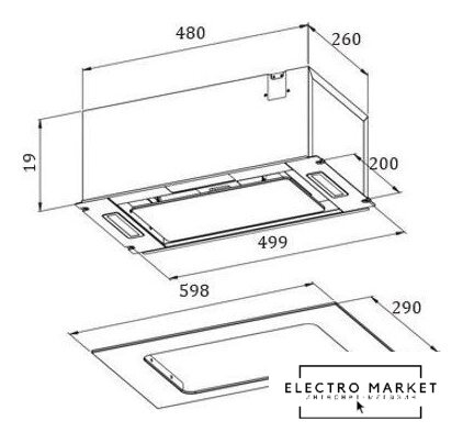 конструкция скрытая, монтаж для встраивания, ширина 52.2 см, управление механическое/слайдерное, производительность вытяжки 580 м³/ч, цвет нержавеющая сталь