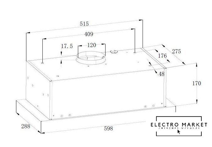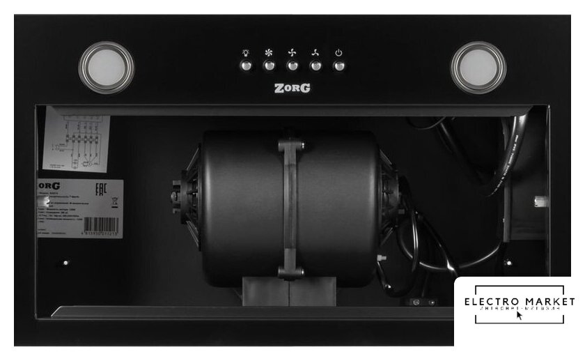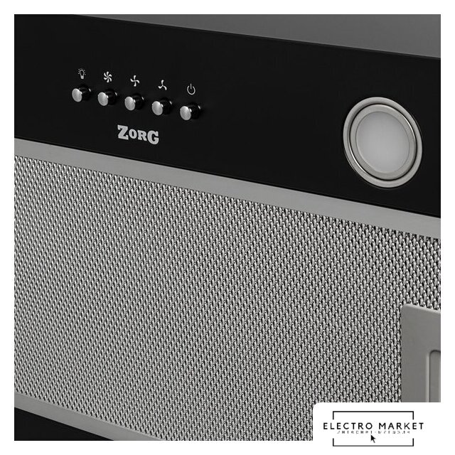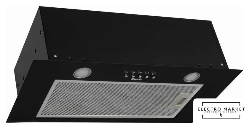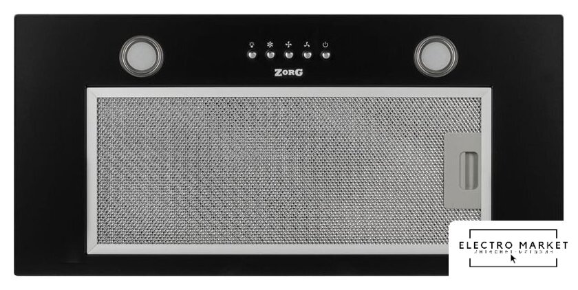 конструкция скрытая, монтаж для встраивания, ширина 59.8 см, управление механическое/кнопочное, производительность мотора 1050 м³/ч, цвет черный