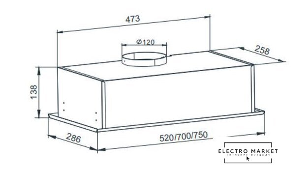 конструкция скрытая, монтаж для встраивания, ширина 49.5 см, управление механическое/кнопочное, производительность мотора 650 м³/ч, цвет слоновая кость