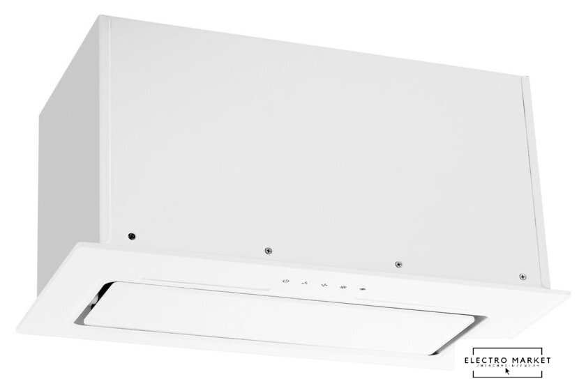 конструкция скрытая, монтаж для встраивания, ширина 72 см, управление сенсорное, производительность мотора 750 м³/ч, цвет белый
