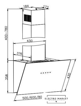 конструкция телескопическая, монтаж для встраивания, управление электронное/кнопочное, производительность вытяжки 480 м³/ч, производительность мотора 900 м³/ч, ширина 59.8 см