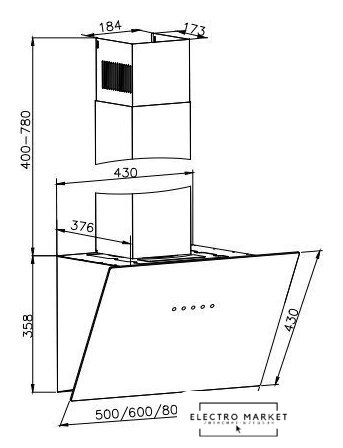 конструкция купольная, монтаж настенный, ширина 59.6 см, управление механическое/кнопочное, производительность мотора 1300 м³/ч, цвет черный