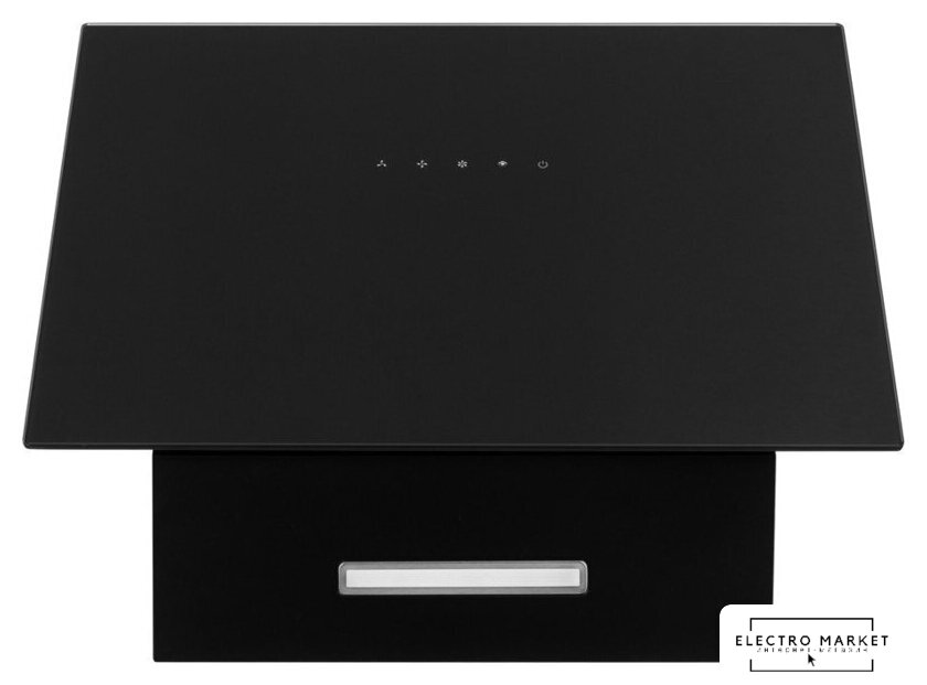 конструкция наклонная, монтаж настенный, ширина 90 см, управление сенсорное, производительность вытяжки 1000 м³/ч, производительность мотора 1000 м³/ч, цвет черный