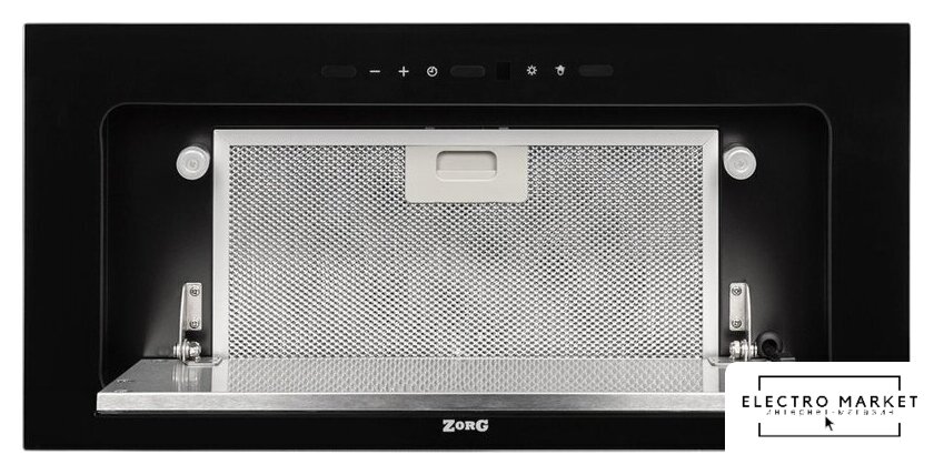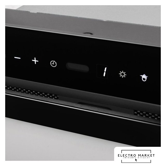 конструкция скрытая, монтаж для встраивания, ширина 85 см, управление сенсорное, цвет черный