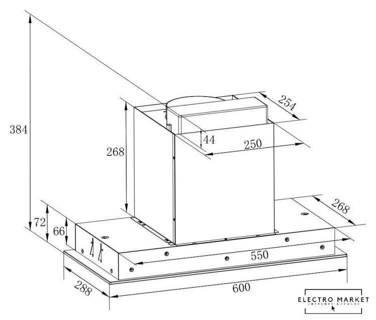 конструкция наклонная, монтаж настенный, ширина 59.5 см, управление сенсорное, производительность мотора 800 м³/ч, цвет белый