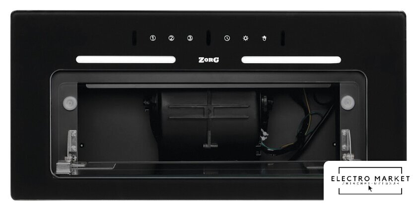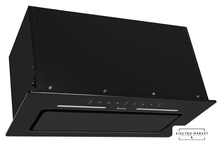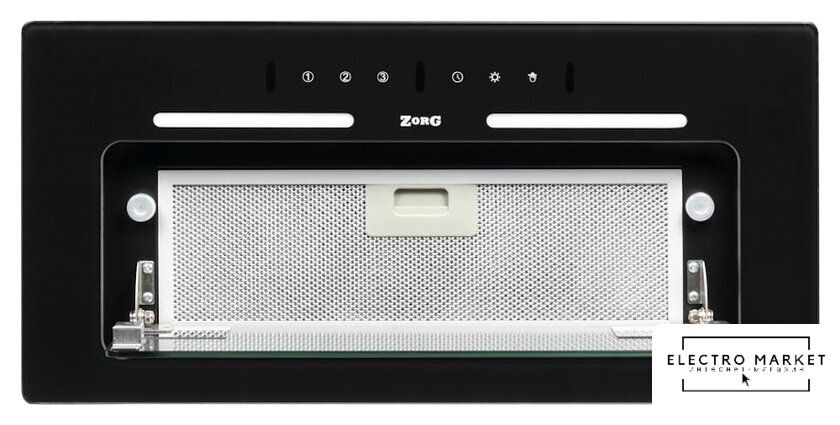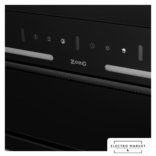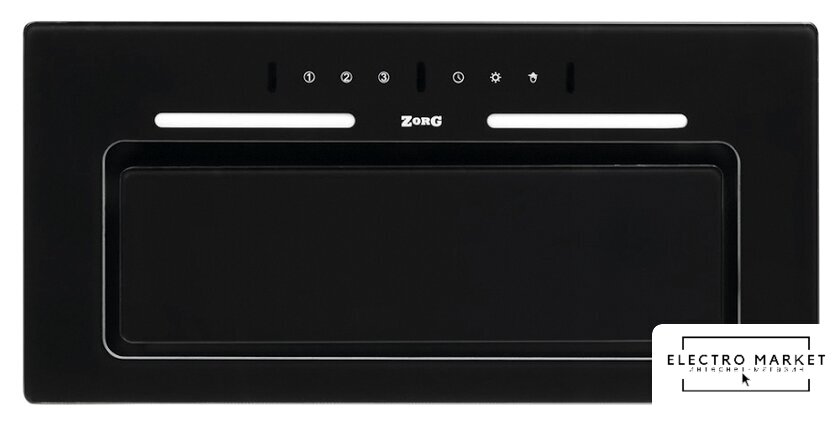 конструкция коробчатая, монтаж настенный, ширина 54 см, управление сенсорное, производительность вытяжки 600 м³/ч, производительность мотора 900 м³/ч, цвет черный