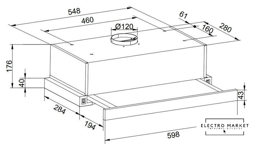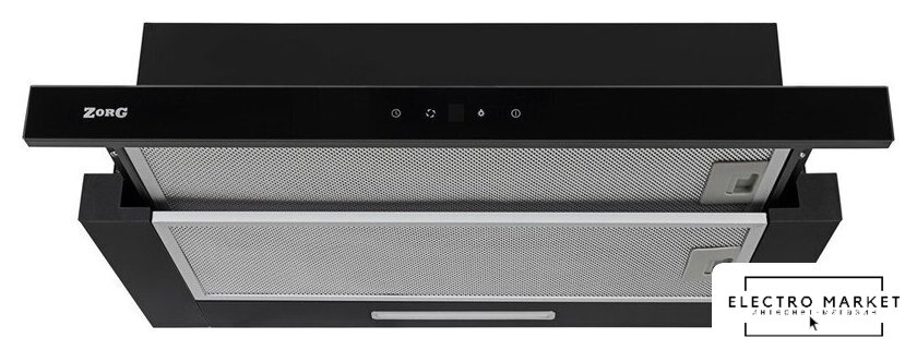 конструкция телескопическая, монтаж для встраивания, управление механическое/кнопочное, производительность мотора 650 м³/ч, ширина 49.8 см