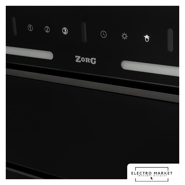 конструкция наклонная, монтаж настенный, ширина 59.5 см, управление сенсорное, производительность мотора 1150 м³/ч, цвет черный