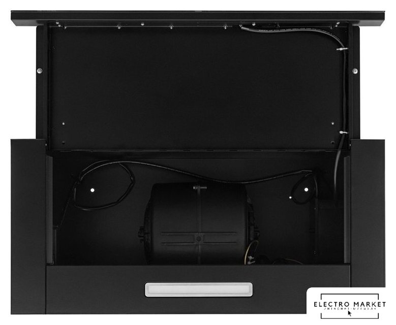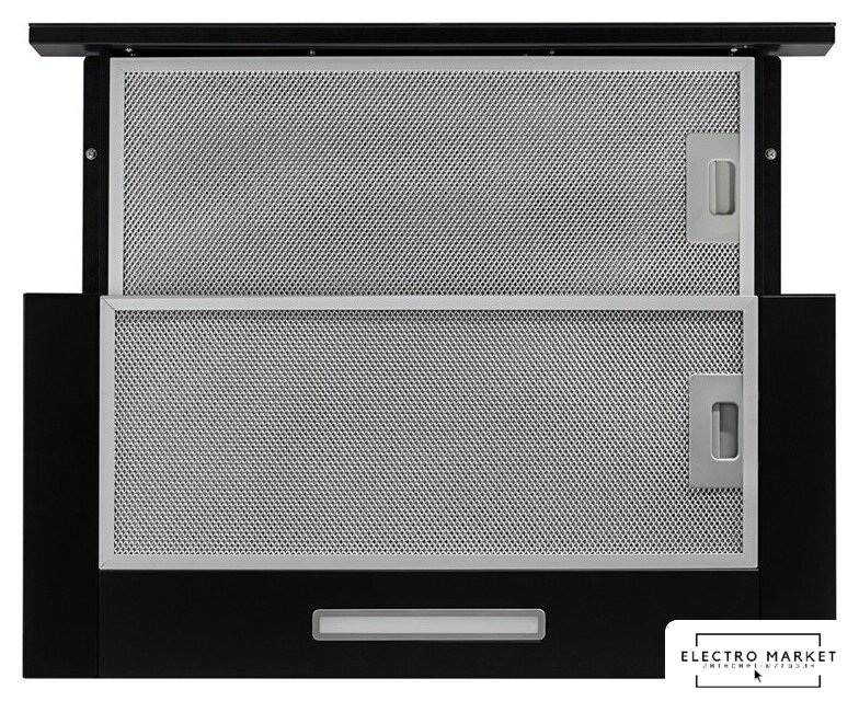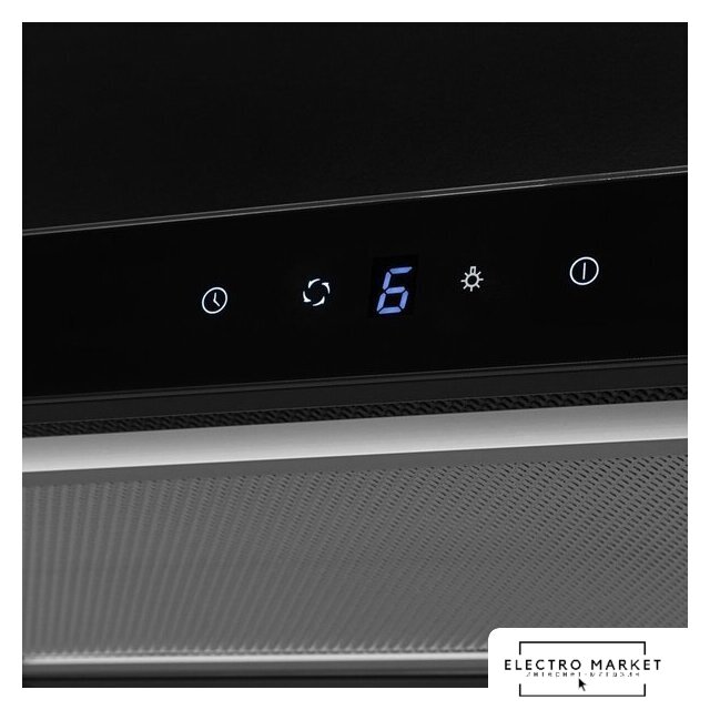 конструкция скрытая, монтаж для встраивания, ширина 69.8 см, управление сенсорное, производительность мотора 1050 м³/ч, цвет черный