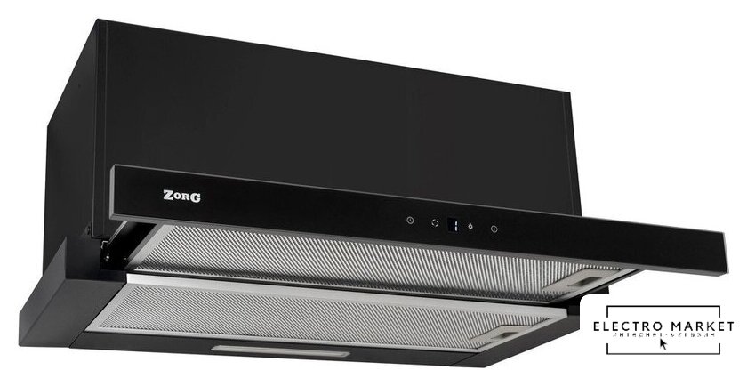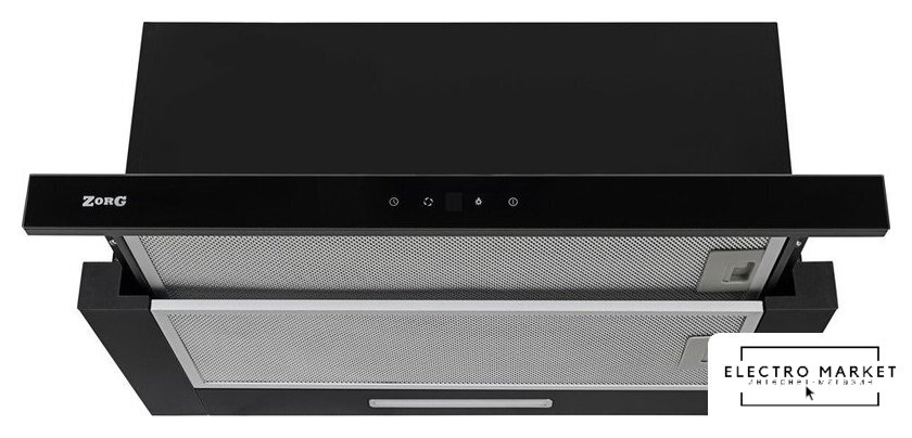конструкция наклонная, монтаж настенный, ширина 59.5 см, управление сенсорное, производительность мотора 1000 м³/ч, цвет черный
