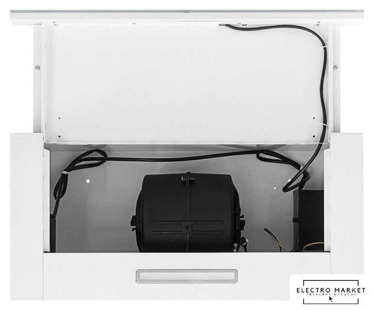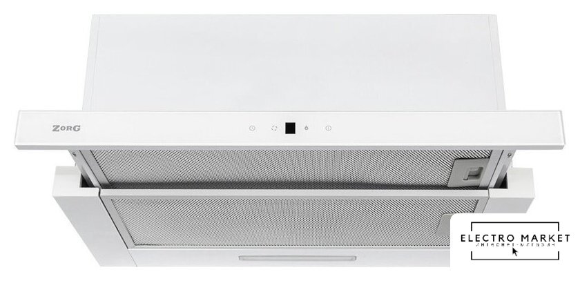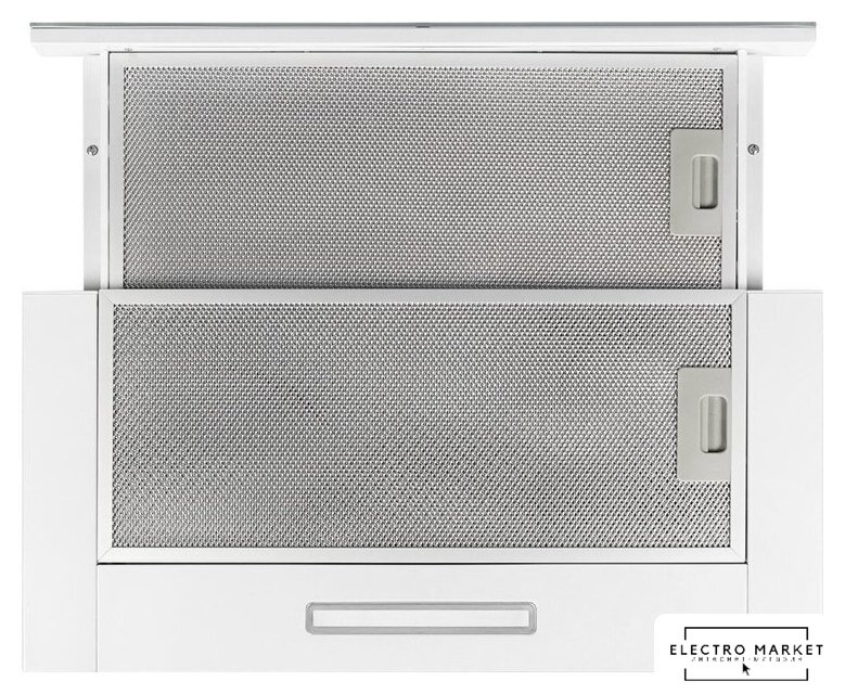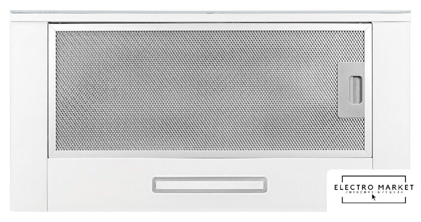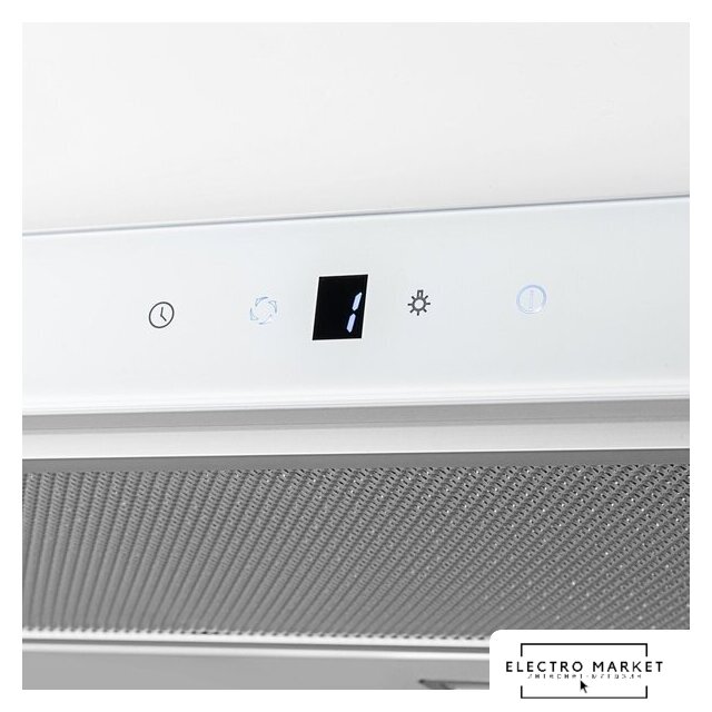 конструкция купольная, монтаж настенный, ширина 59.8 см, управление механическое/кнопочное, производительность мотора 650 м³/ч, цвет белый/серебристый