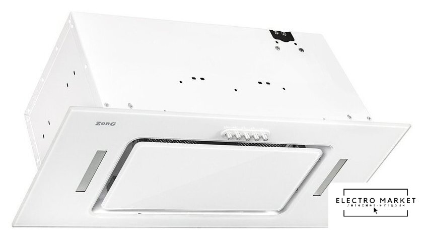 конструкция скрытая, монтаж для встраивания, ширина 52 см, управление сенсорное, производительность мотора 900 м³/ч, цвет белый