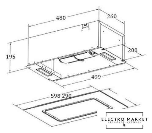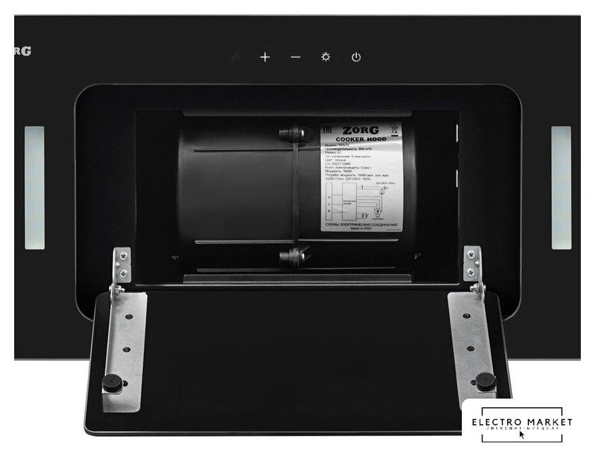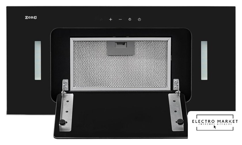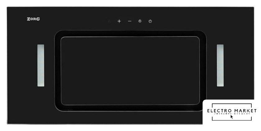 конструкция скрытая, монтаж для встраивания, ширина 59.8 см, управление электронное/кнопочное, производительность вытяжки 1000 м³/ч, цвет черный
