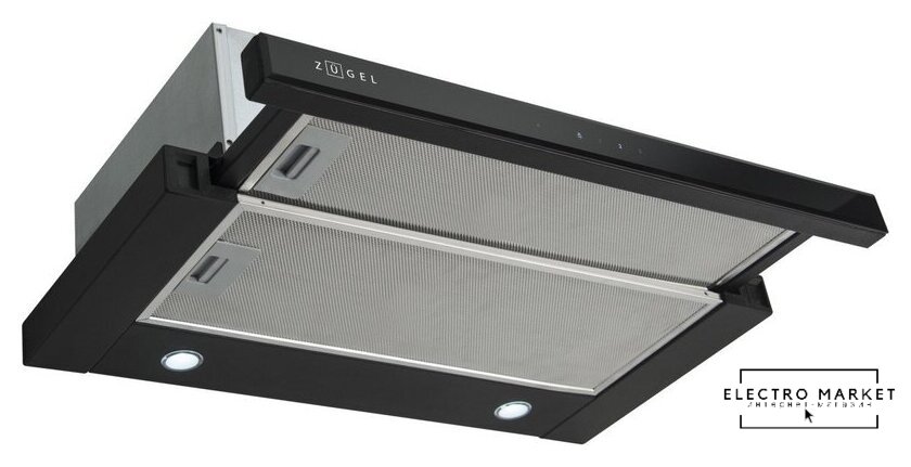 конструкция скрытая, монтаж для встраивания, ширина 85 см, управление сенсорное, цвет черный