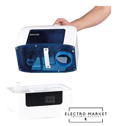 ультразвуковой, помещение до 30 м², производительность 350 мл/ч, резервуар 4.8 л, гигростат, фирменное приложение, ионизация, шум 40 дБ, цвет черный/серый