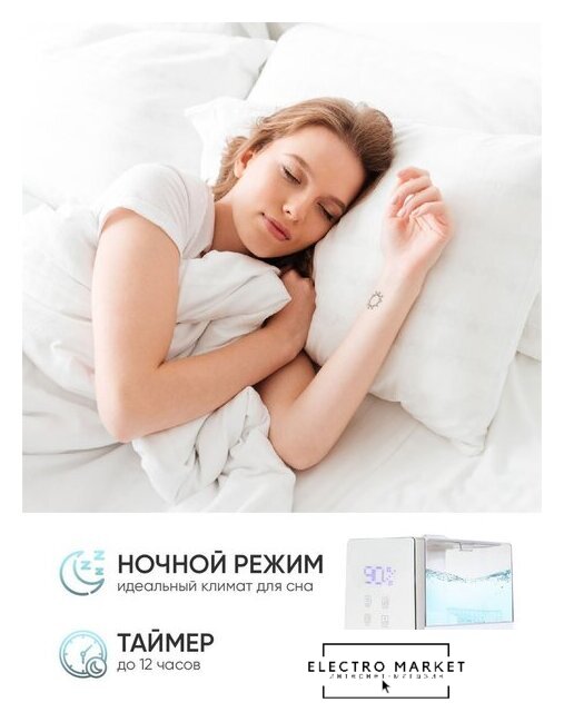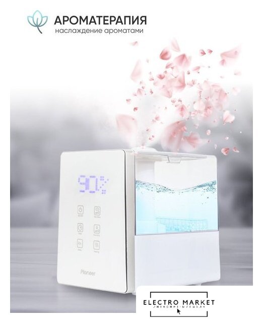 ультразвуковой, помещение до 30 м², производительность 250 мл/ч, резервуар 8.6 л, ароматизация, шум 0 дБ, цвет белый