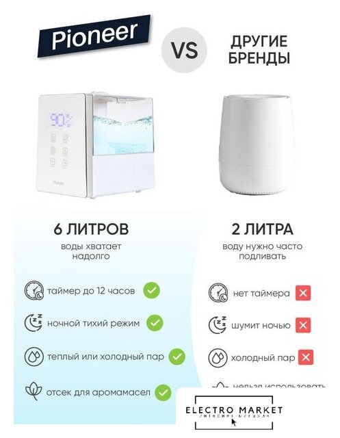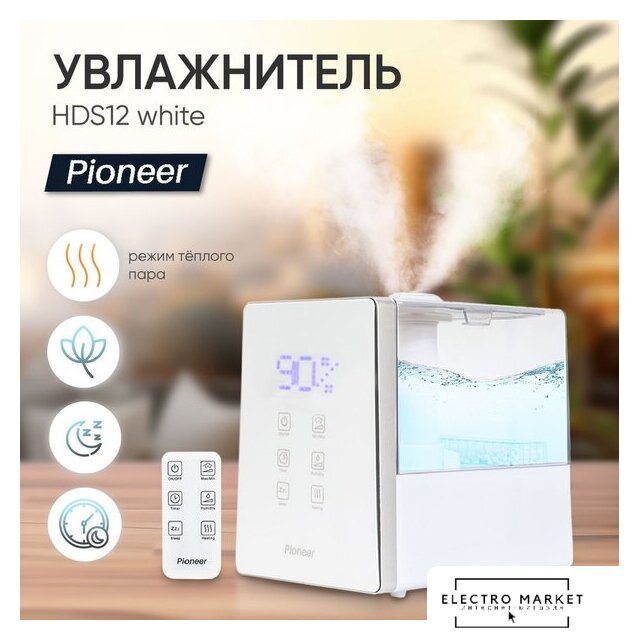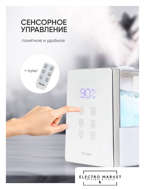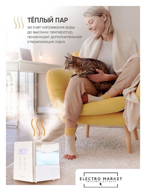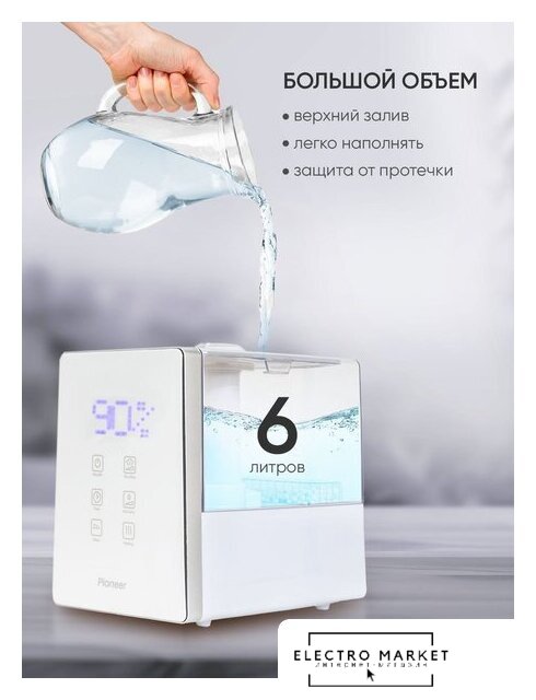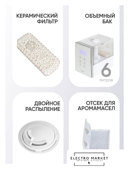 ультразвуковой, помещение до 50 м², производительность 550 мл/ч, резервуар 6.3 л, гигростат, ионизация, цвет белый