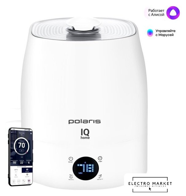 ультразвуковой, помещение до 50 м², производительность 390 мл/ч, резервуар 8 л, гигростат, Яндекс Алиса/фирменное приложение, цвет черный