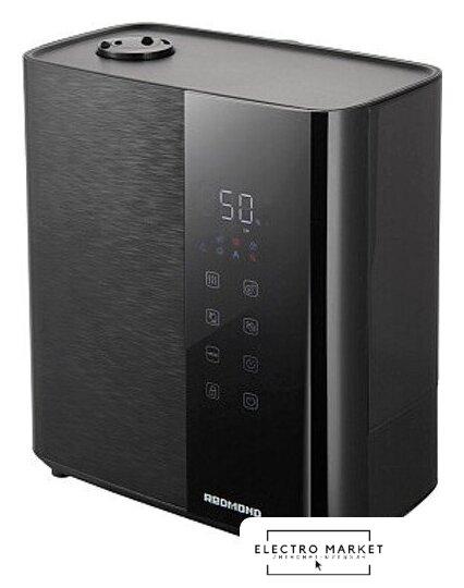 ультразвуковой, помещение до 50 м², производительность 450 мл/ч, резервуар 5 л, гигростат, ионизация, ароматизация, шум 25 дБ, цвет черный
