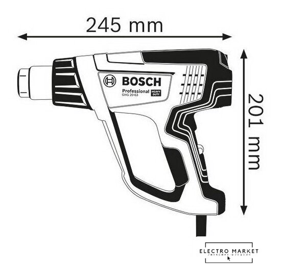 2000 Вт, 90–600 °С, 300–500 л/мин, 0.9 кг