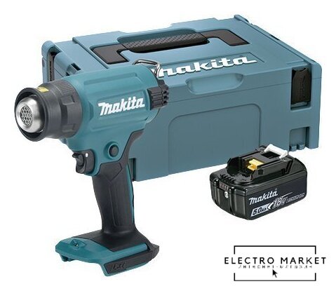 Комплект поставки | - Термовоздуходувка;- 1 аккумулятор BL1850B 5.0 Ah;- Зарядное устройство DC18RC;- 4 насадки;- Кейс MakPac 2. |
