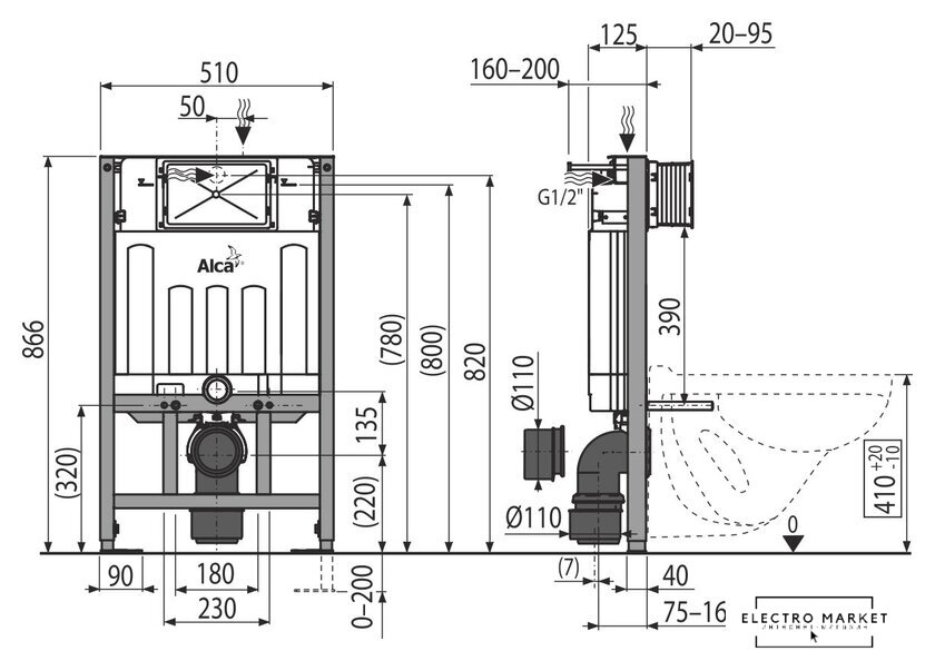 крепление на капитальную стену/на пол/на некапитальную стену, двухрежимный слив, механическое управление, бачок в комплекте, 50x113-133x14-23 см