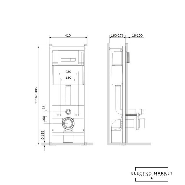 | Отверстия под унитаз | 180 мм, 230 мм |