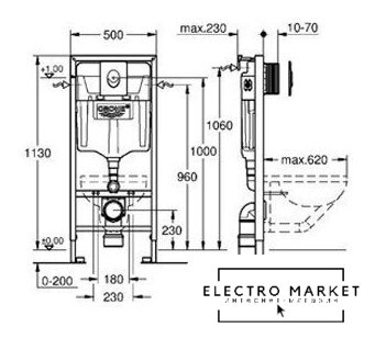 | Отверстия под унитаз | 180 мм, 230 мм |