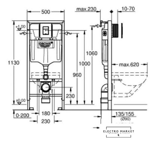крепление на капитальную стену, двухрежимный слив, механическое управление, бачок в комплекте, 49x70x15.4 см