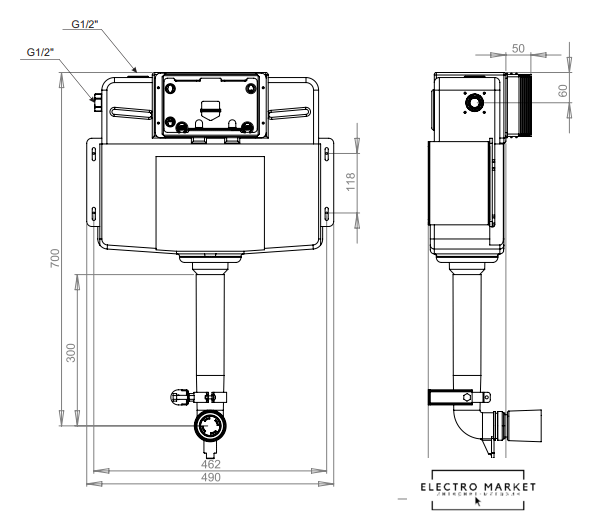 крепление на капитальную стену/на пол, макс. нагрузка 500 кг, двухрежимный слив, механическое управление, бачок в комплекте, 52.5x111.9x10.5-15 см