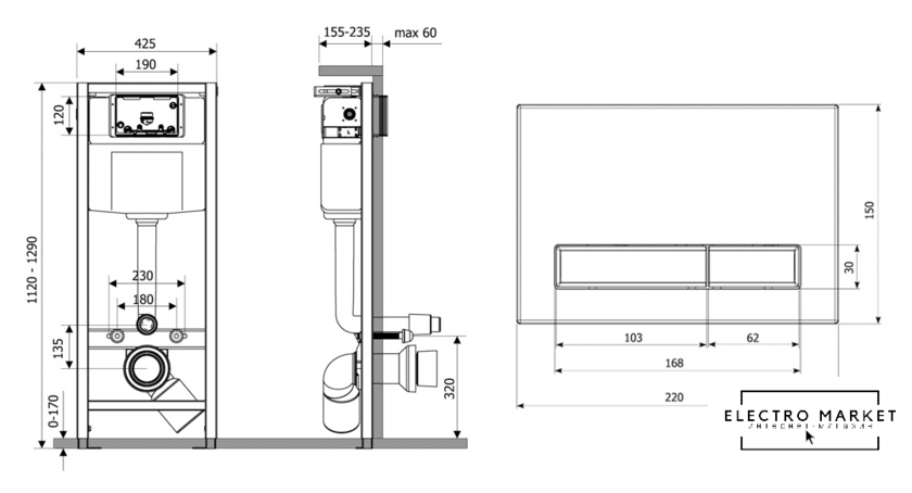 крепление на капитальную стену/на пол/на некапитальную стену, макс. нагрузка 400 кг, однорежимный/двухрежимный/трехрежимный/прерываемый слив, механическое управление, бачок в комплекте, 42.5x129x45 см